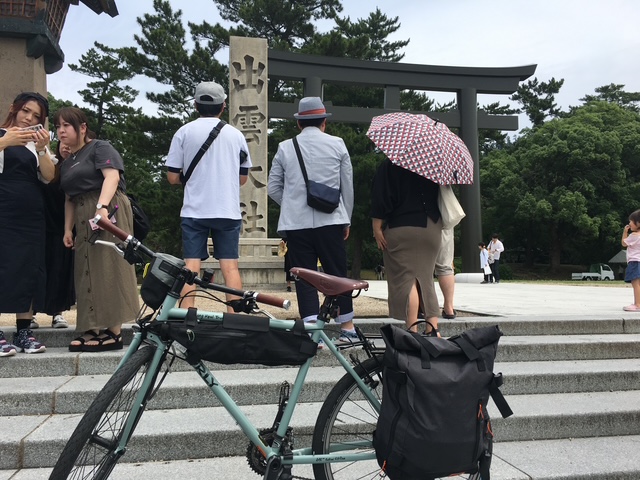 少し離れた駐車場に車を停め、持参した自転車で出雲大社へ。