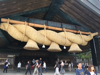 神楽殿の大注連縄に圧倒される